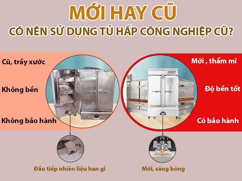 Khi mua một chiếc tủ hấp cơm công nghiệp cũ, bạn cần xác định trước việc không được hỗ trợ bảo hành bởi người bán. Nếu không nắm được các vấn đề kỹ thuật liên quan đến tủ hấp xôi thì bạn nên xem xét mua một chiếc tủ hấp xôi công nghiệp mới để đảm bảo quyền lợi và an toàn trong quá trình sử dụng.